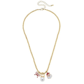 Candy Cane Bow & Santa Charm Necklace in Gold