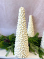 We love to layer cone trees with bottle brush trees, ceramic trees, and cone trees with different colors! Use books to layer the heights and show the collection together!
