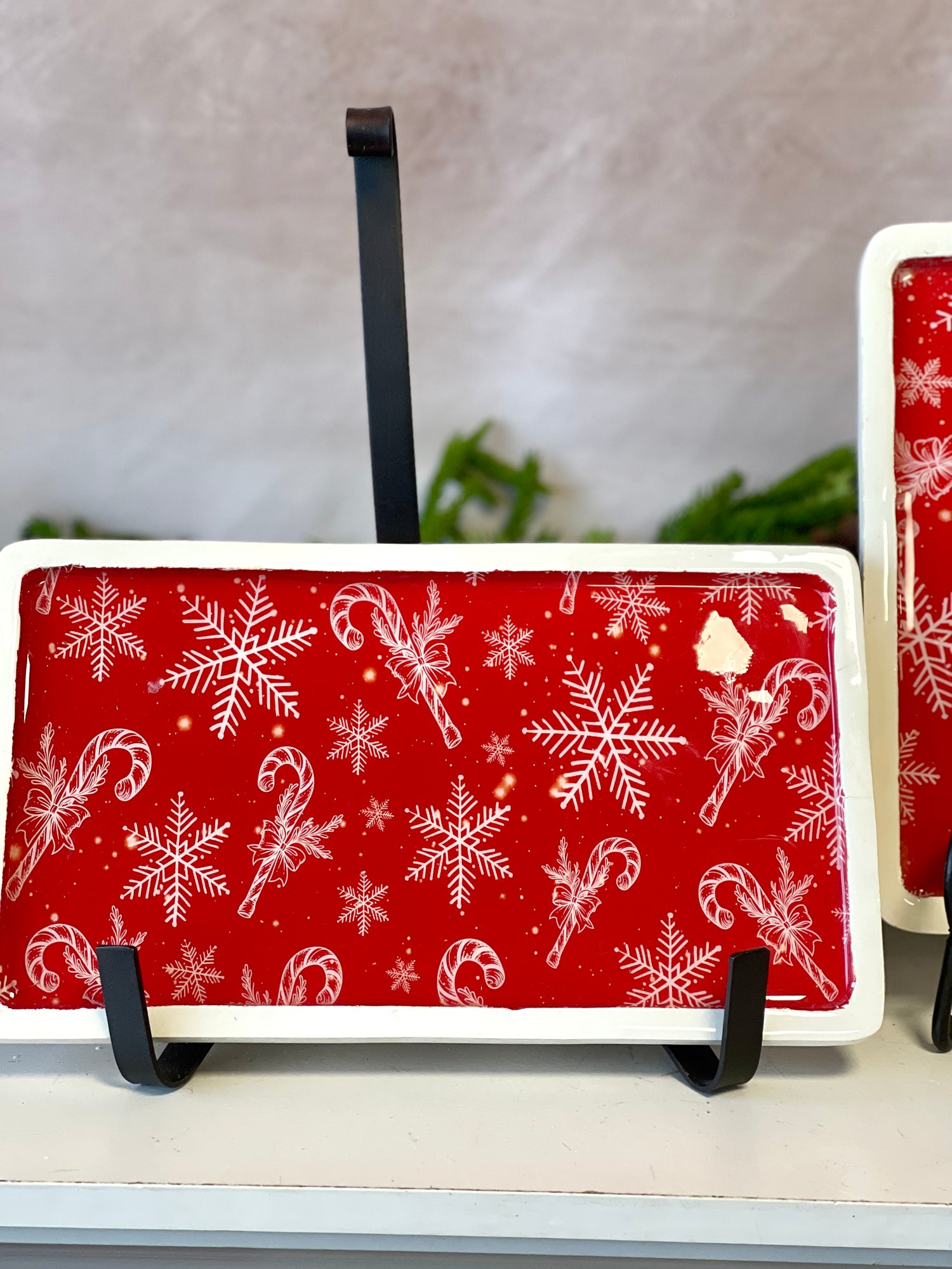 Red Snowflake Wood Tray - 2 Sizes
