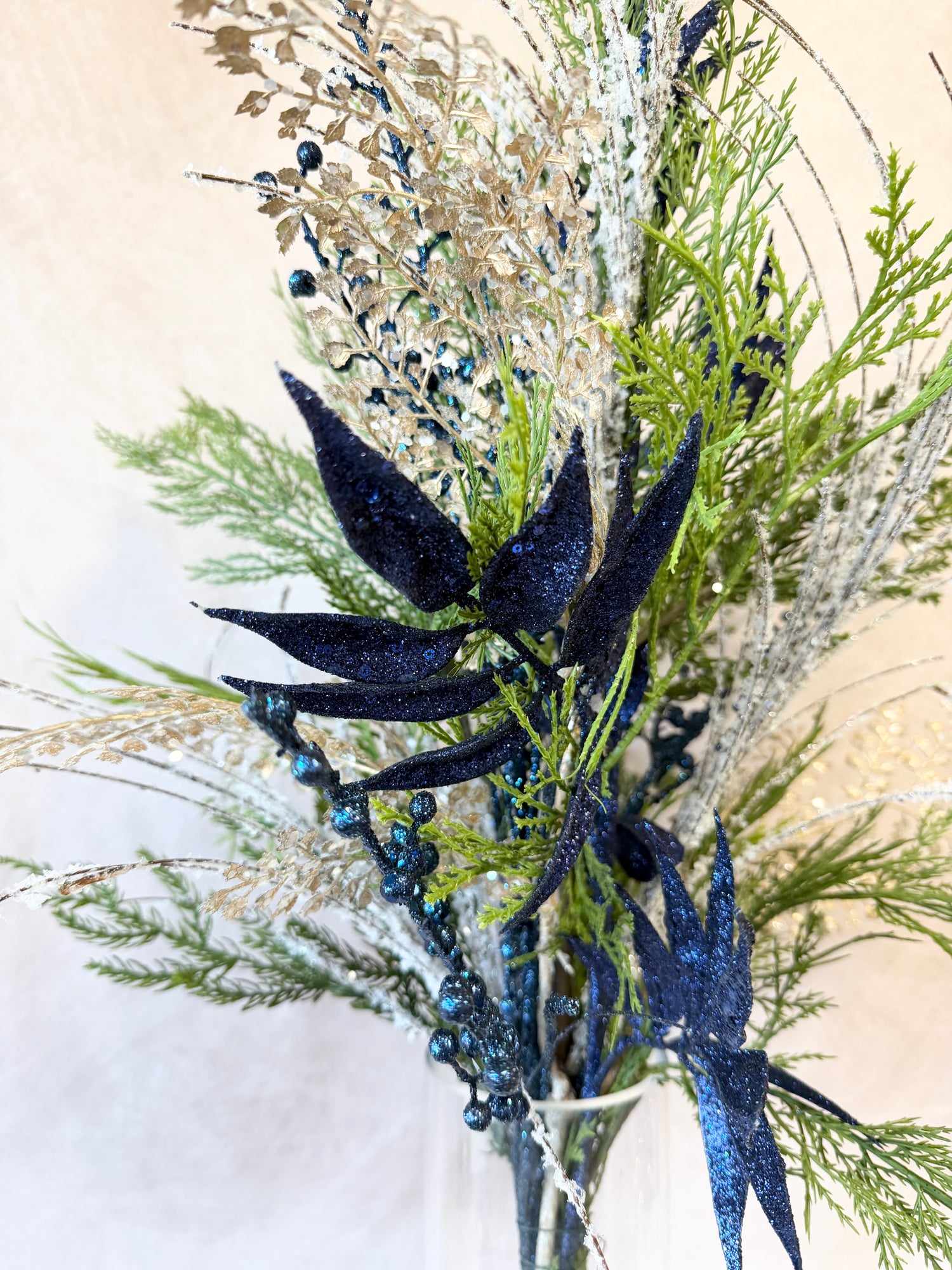- Midnight Blue Glitter Leaf Spray