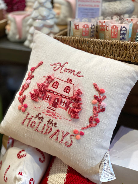 Merry & Bright Hand Embroidered Lumbar Pillow