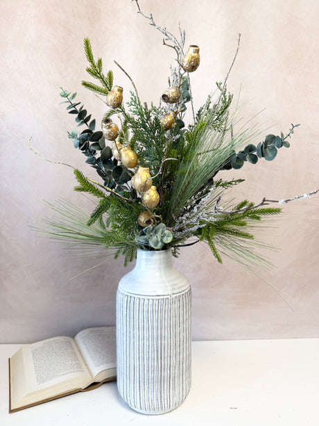 Our collection of silk floral designs is expertly hand-made by our talented floral designers, using only the highest quality silk flowers. Not only do our designs boast a realistic and stunning appearance, but they are also long-lasting and require no watering or maintenance. These silk florals are perfect for those who want to bring the beauty of nature into their homes or office spaces without the hassle of constantly tending to real plants. Whether you're looking for a centerpiece for a special occasion or a statement piece for your living room, our collection has something for everyone.