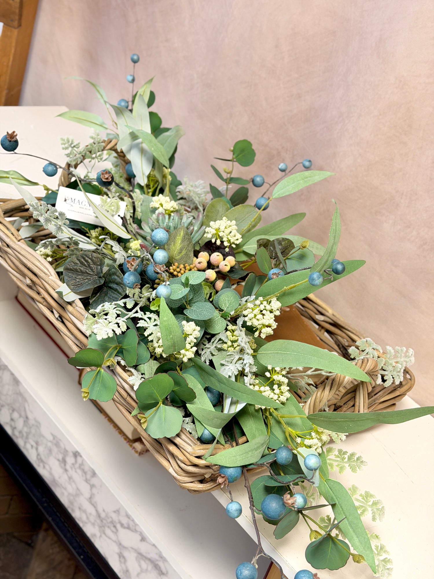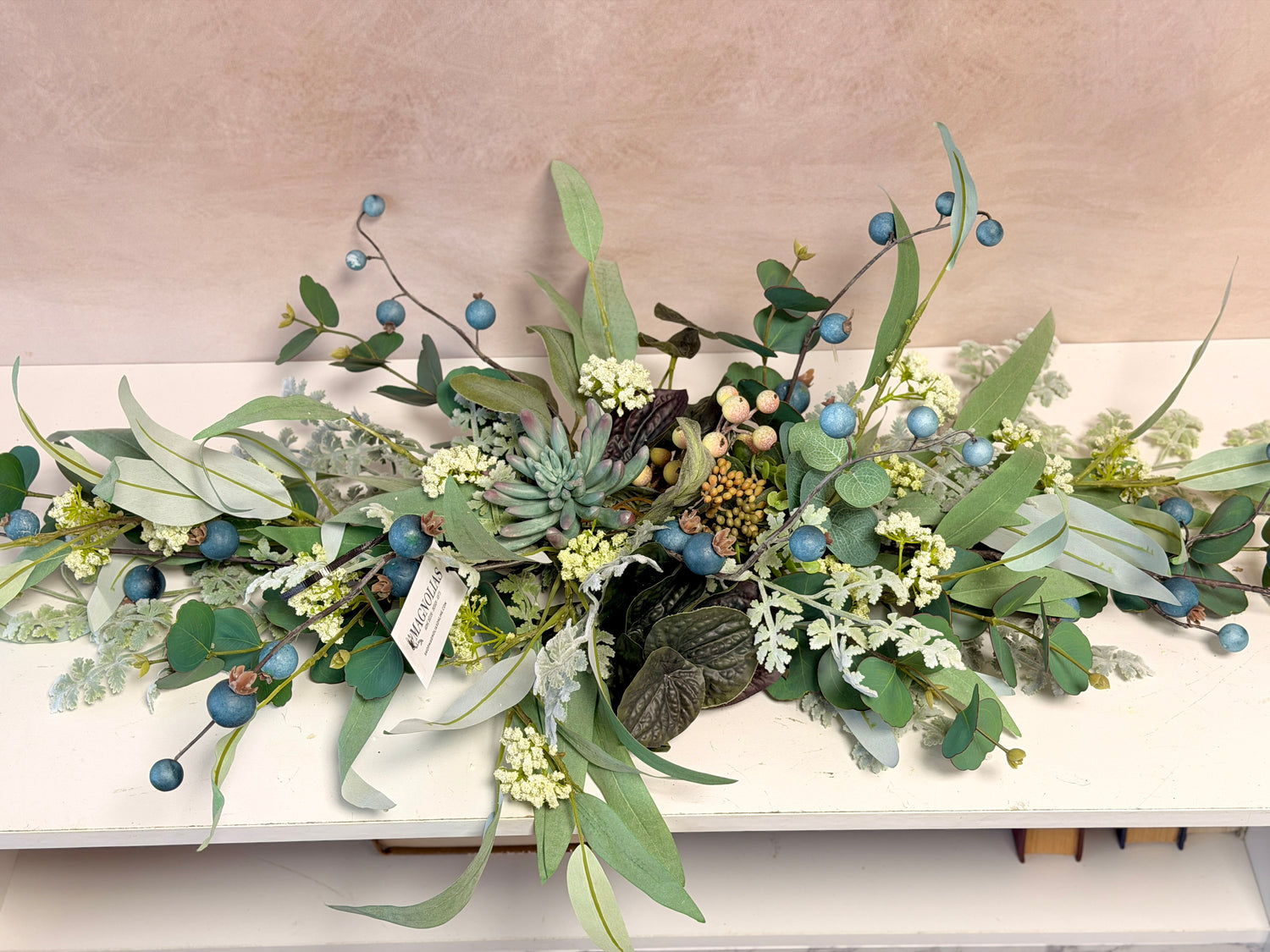 Our swags are the most versatile of all of our silk floral designs! You can use these one-sided flat designs in trays, bowls, or hanging on your wall or front door!