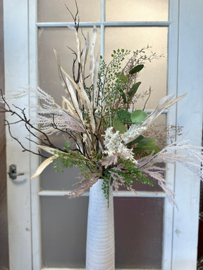 Transform your vase with this custom silk floral design made from high-quality stems.