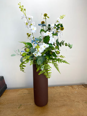 Transform your vase with this custom silk floral design made from high-quality stems.