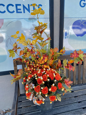 This porch pot is made of high-quality outdoor safe silk floral stems.