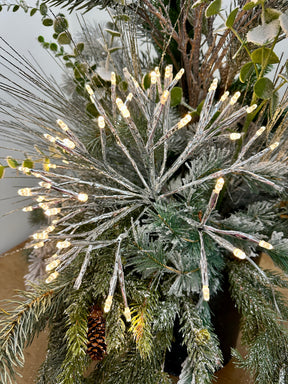 Our Shimmering Sphere is a LED hanging sphere with metallic wrapped branches and twinkling strobe accents. With wrap matching the LED lights, and twinkling lights placed throughout the sphere, this is your go-to when you want to take your decor to the next level.