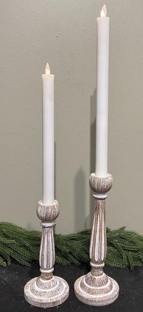 Marie Whitewashed Taper Candleholder Set