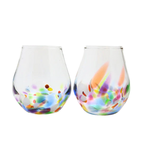 These beautiful stemless Wine Glasses are handblown in Ontario using transformative, recycled glass. Each piece features a vibrant rainbow of coloured frit at the base, adding a subtle, yet captivating touch of colour.