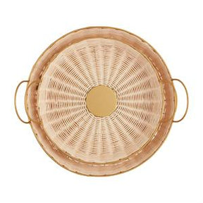 Nested woven trays 2 sizes with brass finished metal side handles.