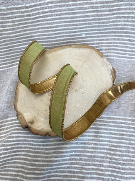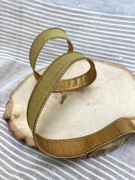 1" Green Fusion Dupion Ribbon Bolt