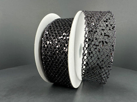 1.5" Black Glitter Net Ribbon Bolt