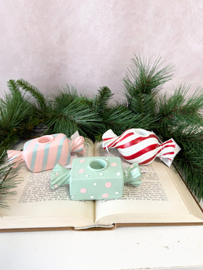 Candy Taper Candleholder - 3 Colors - Pink is backordered and will ship as soon as it is back in stock.