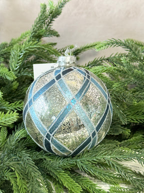 Mercury Glass Blue Stripe Ornament - 3 Styles