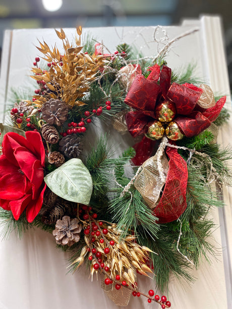 34" Magnolia Christmas Grace Teardrop Swag Design 2