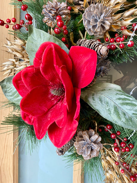 34" Magnolia Christmas Grace Teardrop Swag Design 2