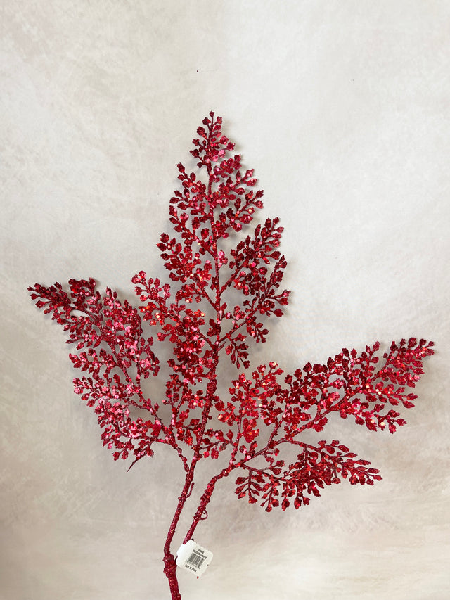 Red Sequin Bendy Fern Spray is backordered and will ship as soon as it is back in stock.
