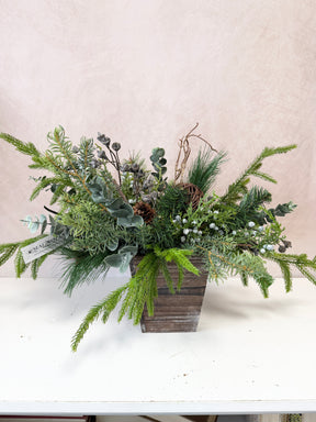 This centerpiece is a one-of-a-kind festive arrangement made by our floral designers.