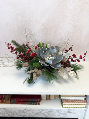 This centerpiece is a one-of-a-kind festive arrangement made by our floral designers.