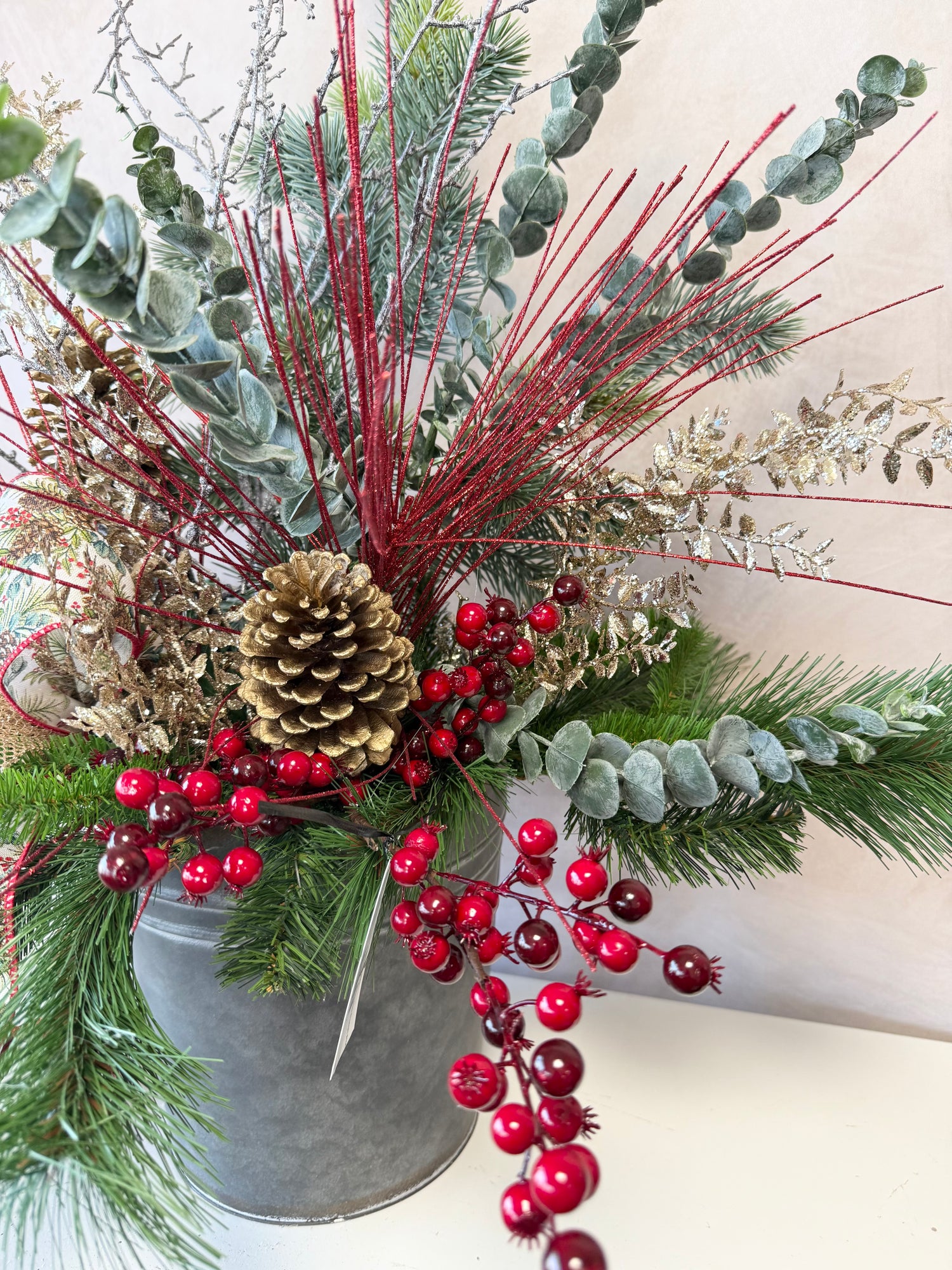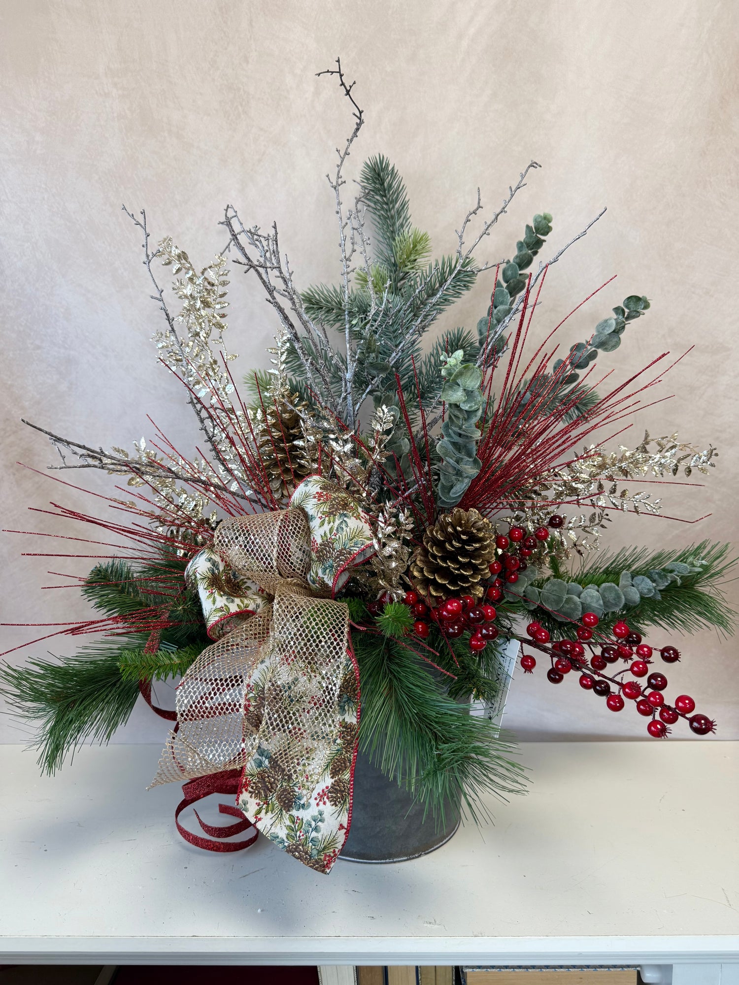 This porch pot is made of high-quality outdoor safe silk floral stems.