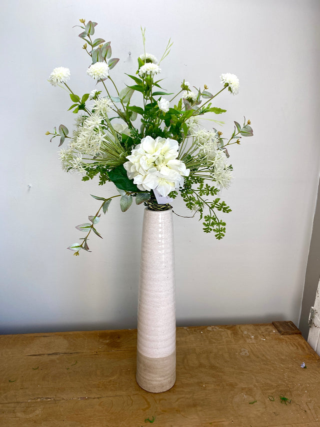 Transform your vase with this custom silk floral design made from high-quality stems.