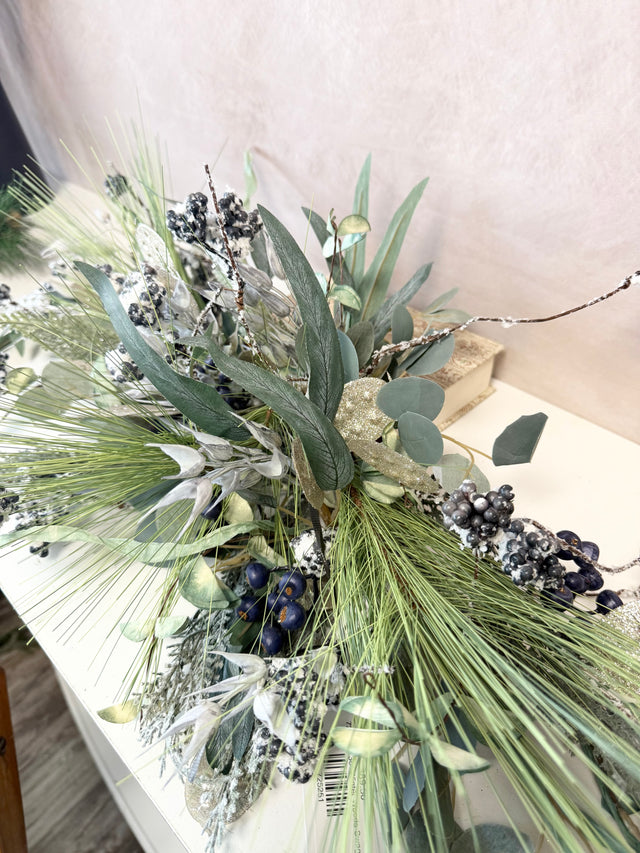 Swags have so many uses! We love to use them as a base for a tray design, on our front door, or even on an appropriately sized lantern. You can even run a light strand through them for a holiday glow. We love to find new ways these versatile florals can be used.