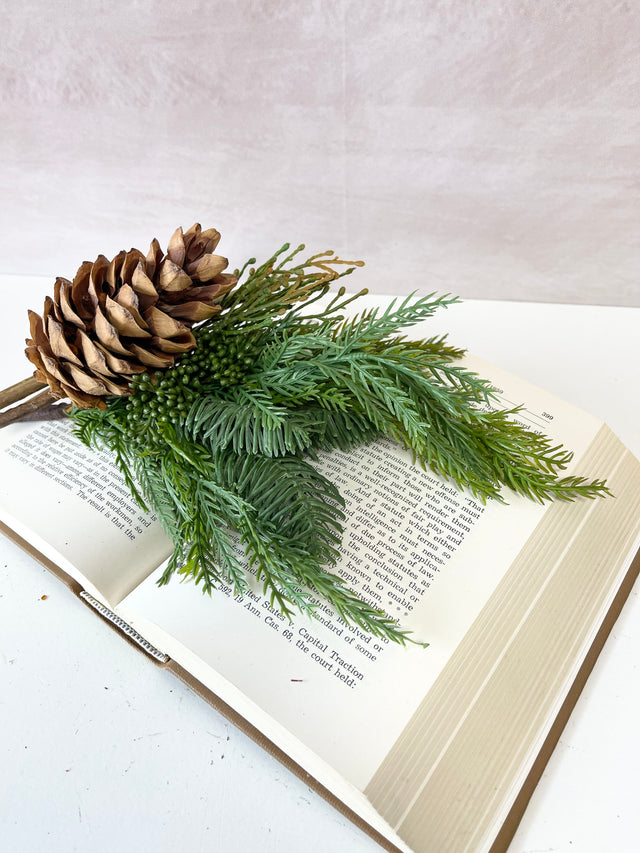 Winter pine is a wonderful addition from the holiday season through the winter months in January and February. Use it in your tree or added to your DIY silk floral design. A fully wired structure allows you to bend and shape the artificial spray however you wish.
