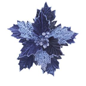 Velvet Navy Glitter Poinsettia Stem is backordered and will ship as soon as it is back in stock.