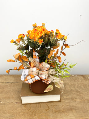 This centerpiece is a one-of-a-kind festive arrangement made by our floral designers.