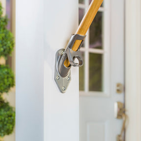 Easy to install, this adjustable pole bracket allows flags to be flown in style. Crafted from aluminum, the two-position bracket, formed by casting, can be used as a wall mount or pole for house and estate flags. Choose between two different positions: 45-degree angle or 90-degree angle. The bracket has a powder-coated aluminum finish that is weather-resistant to ensure long-lasting use.