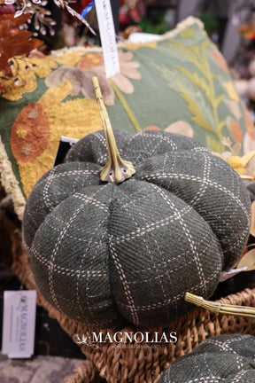 8" Green & Tan Plaid Fabric Pumpkin is backordered and will ship as soon as it is back in stock.