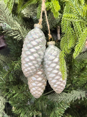 Aqua Glass Pinecone Trio Ornament