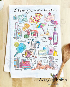 I Love You More Than Dogs & Travel Tea Towel is backordered and will ship as soon as it is back in stock.
