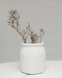 This white terra-cotta crock with volcano glaze will add style and personality to any home. This crock is a beautiful piece that features a terra-cotta body with a white volcano glaze that creates a textured and crackled look. The glaze has a matte and rough surface that contrasts with the smooth and glossy terra-cotta. This crock is made of high-quality terra-cotta that is durable and sturdy. The volcano glaze is a technique that involves applying a thick layer of glaze to the pottery before firing, resulting in a bubbled and crackled surface that resembles volcanic rock. Each crock will vary slightly due to the nature of the technique, making it a unique and one-of-a-kind piece. This crock measures 6.25 inches in diameter and 7 inches in height. Whether placed on a countertop, a table, or a shelf, this crock will surely enhance the home décor with its rustic charm.