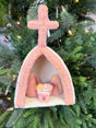 8"H Handmade Wool Felt Holy Family Ornament w/ Metallic Thread Embroidery, Blush Color & White