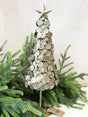 4-1/2" Round x 13-1/2"H Metal Flowers Christmas Tree w/ Star, Antique Silver Finish