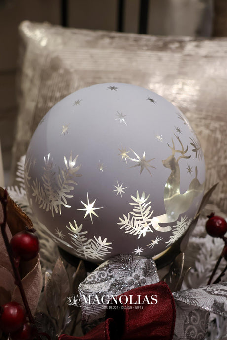 Matte Ivory Hand-Painted Glass Etched Ornament