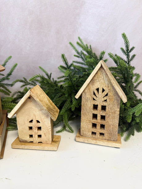 Carved Mango Wood Houses Set of 4