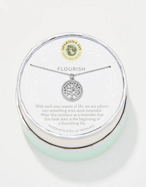 Wear our Flourish Necklace as a reminder of a flourishing life. Featuring a tree of life charm, this special piece comes packaged inside a beautiful box with the message: "With each new season of life, we are reborn into something even more beautiful. Wear this necklace as a reminder that this fresh start is the beginning of a flourishing life."