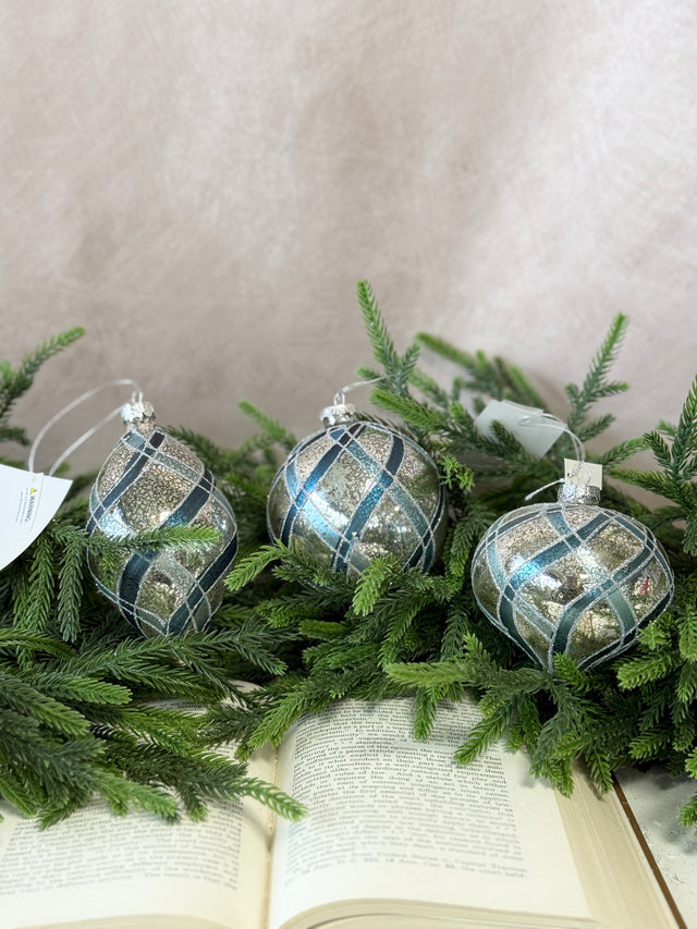 Mercury Glass Blue Stripe Ornament - 3 Styles