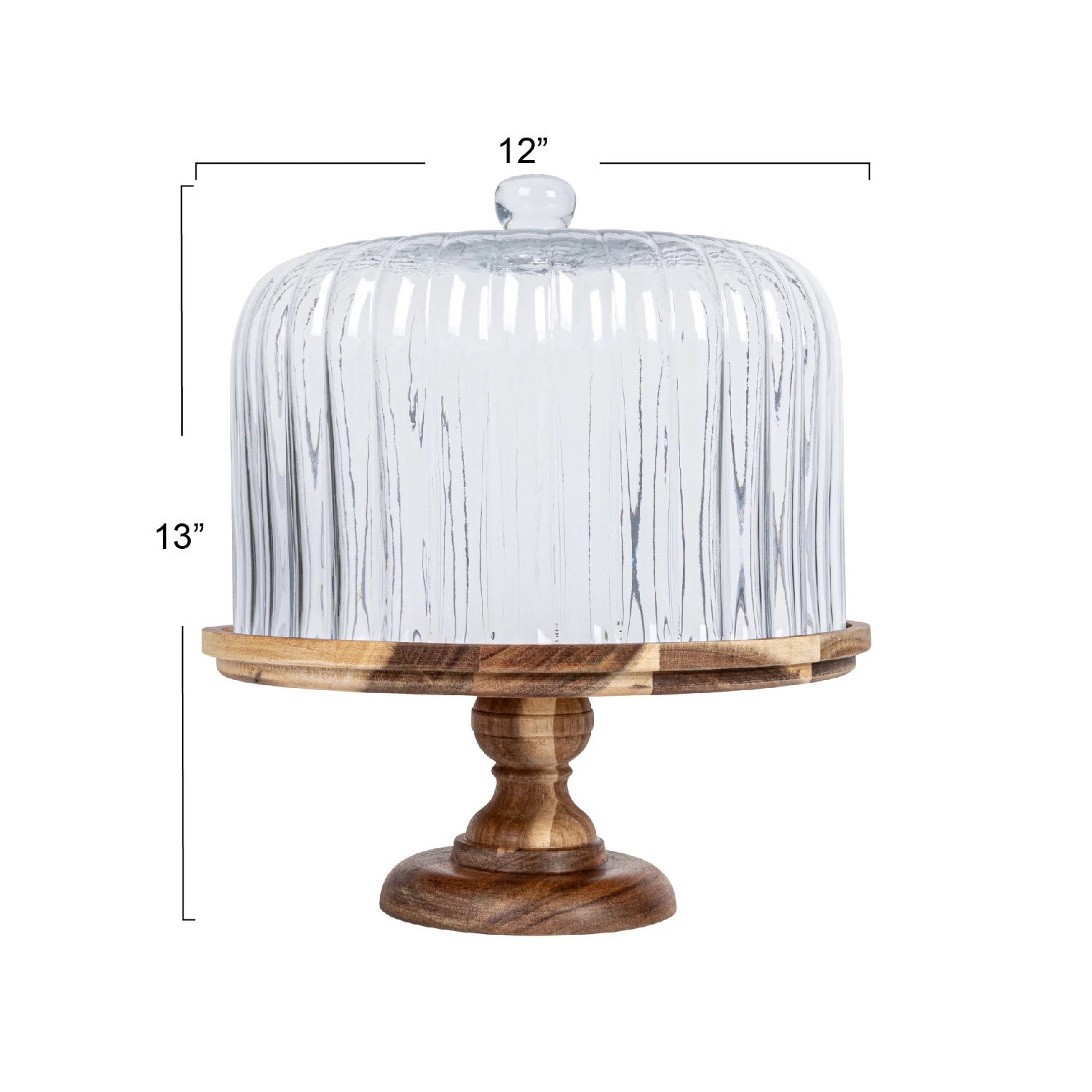 Acacia Wood Pedestal with Fluted Glass Cloche