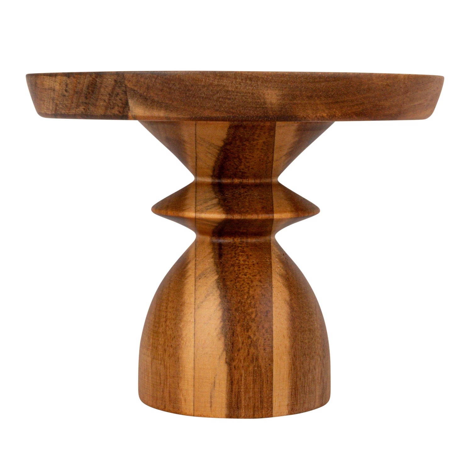 This Acacia Wood-Enhanced Stoneware Serving Set is a testament to timeless design and practicality. Each serving dish, measuring 6.5 inches in diameter and standing 2 inches high, offers a pristine white canvas for varied culinary creations. The acacia wood pedestals, one at 3 inches high and the other at 4.5 inches, provide a sturdy and stylish base, elevating the dishes to new heights of elegance. Whether used for serving gourmet cheeses or showcasing decadent desserts, this set promises to be a versatile and attractive addition to any table setting. The natural variance in wood grain and stoneware glaze ensures that each piece is as unique as the meals it presents.