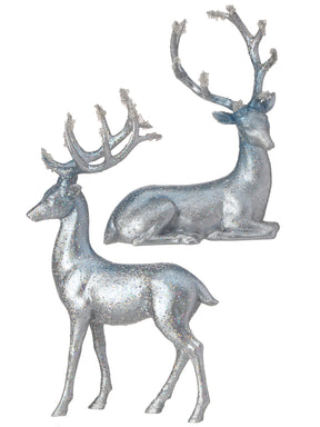 Silver Resin Winter Deer - 2 Styles - Standing is backordered and will ship as soon as it is back in stock.