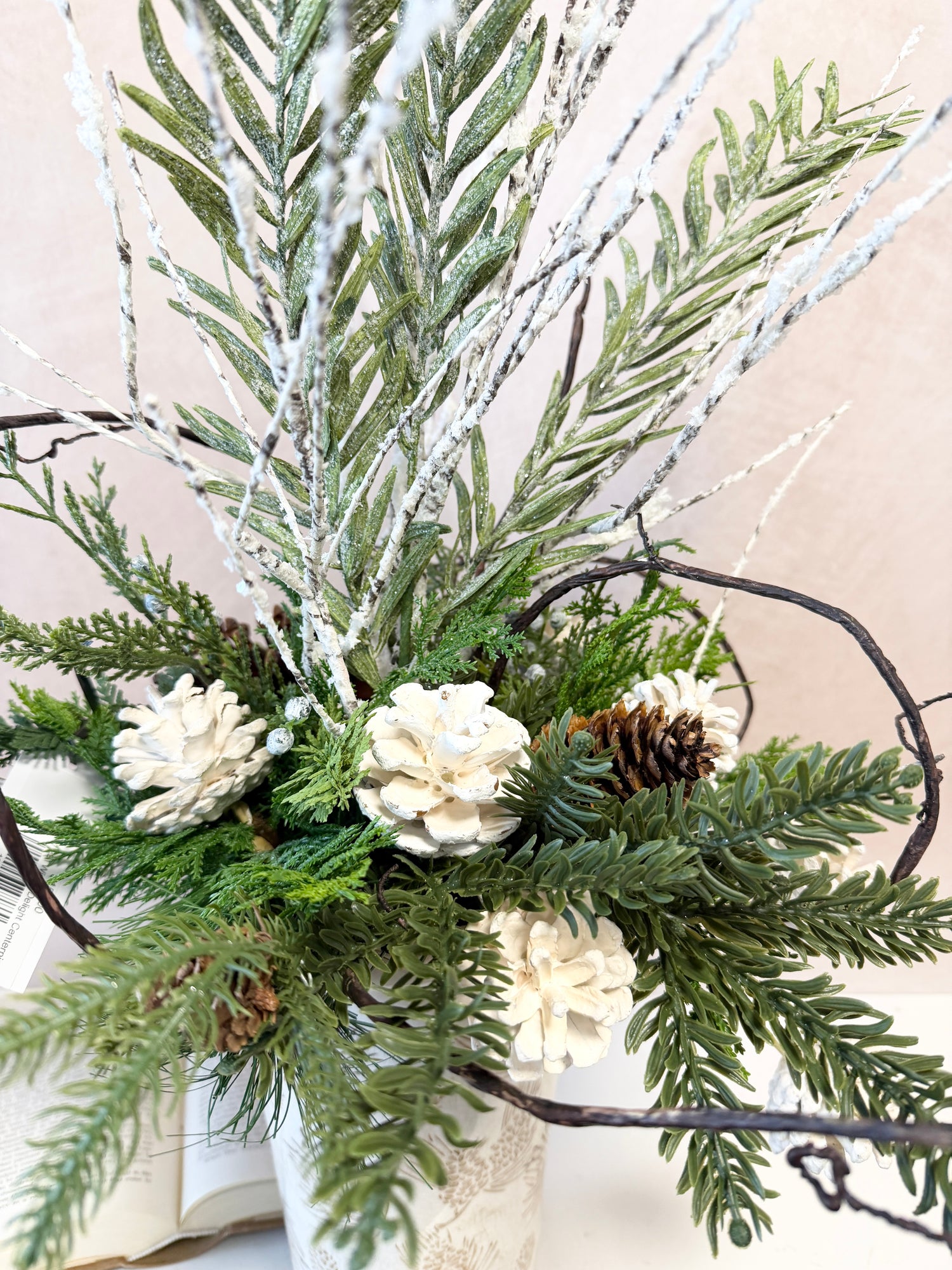 This centerpiece is a one-of-a-kind festive arrangement made by our floral designers.
