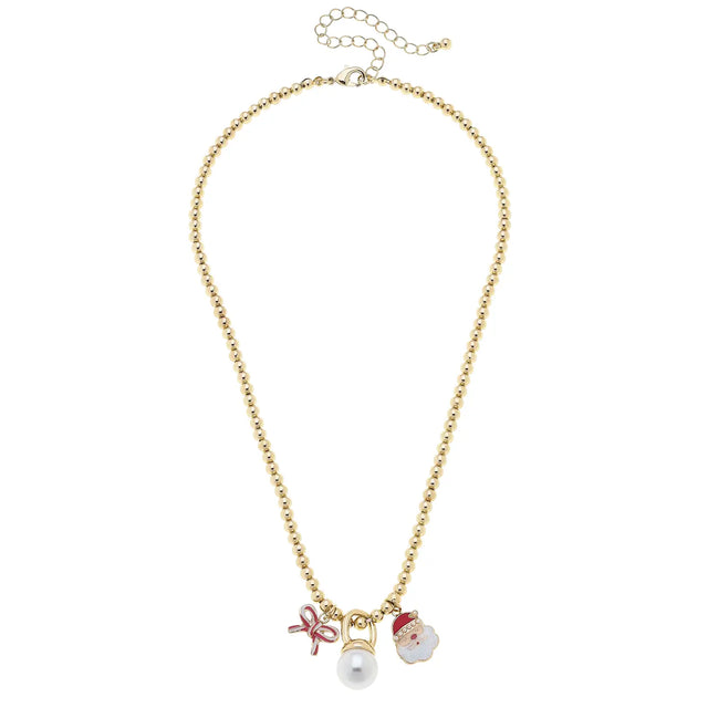 Santa and candy cane charms dangle from a shiny bead chain. A jolly necklace made for festive layering.