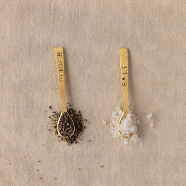3-1/4"L Metal "Salt" & "Pepper" Spoons, Brass Finish