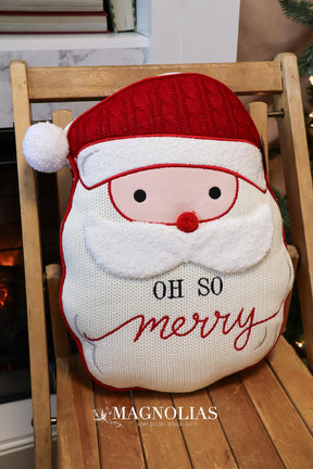 13"L x 17"H Fabric Tufted Santa Shaped Pillow "Oh So Merry", White & Red
