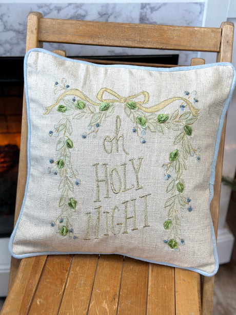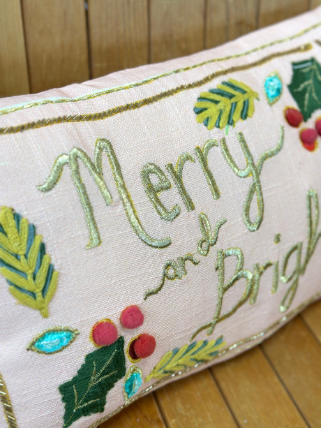 Merry & Bright Hand Embroidered Lumbar Pillow
