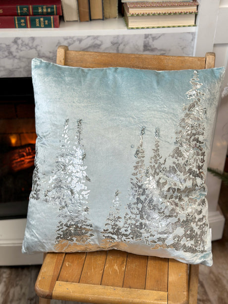 Silver Foil Trees & Beaded Snowflakes Velvet Pillow