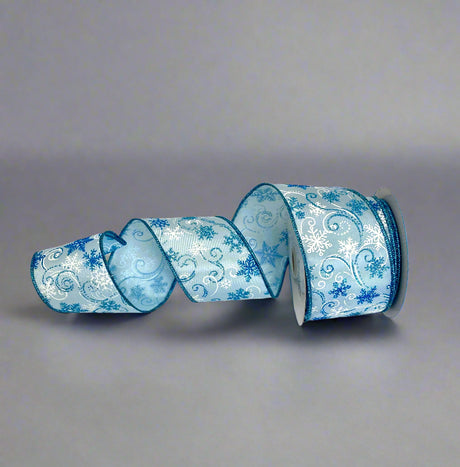 2.5" Blue Snowflake Swirl Ribbon Bolt